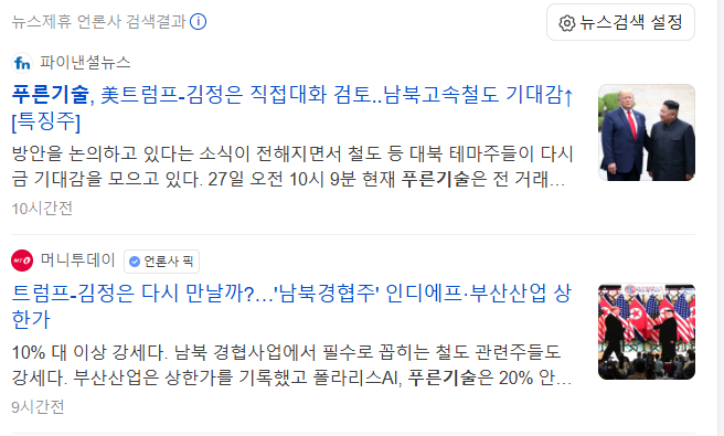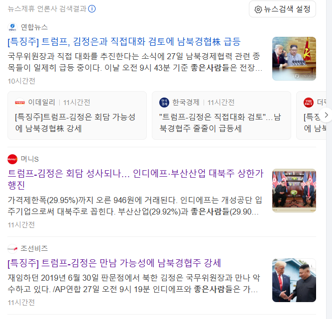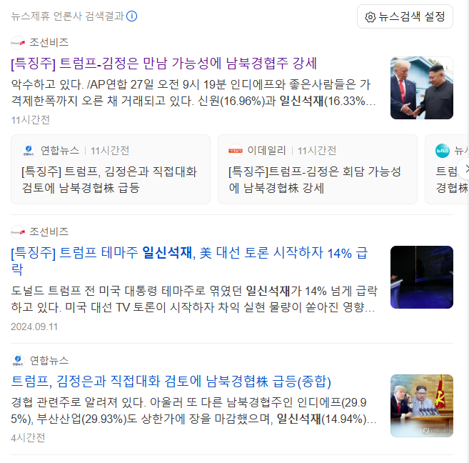 11월 27일 주가는 대북 관련주, 남북경협주 등의 종목에서 주가 상승이 있었습니다. 금일 급등한 특징주 10개 종목에 대해 알아보겠습니다.